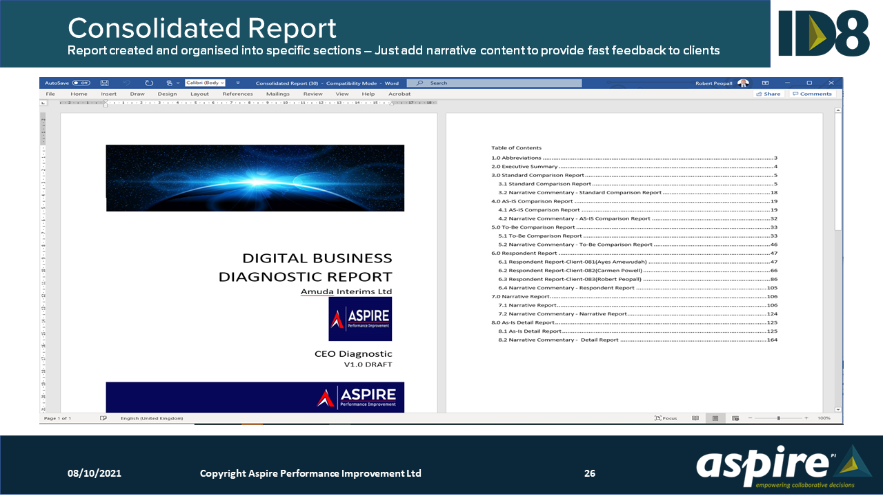 Consolidated Final Report with auto build capability. Just add commentary and other input required to complete